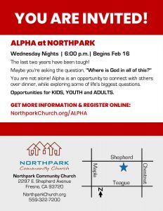 This is a great opportunity to invite friends, neighbors and family members to explore questions they may have about faith, life and God.