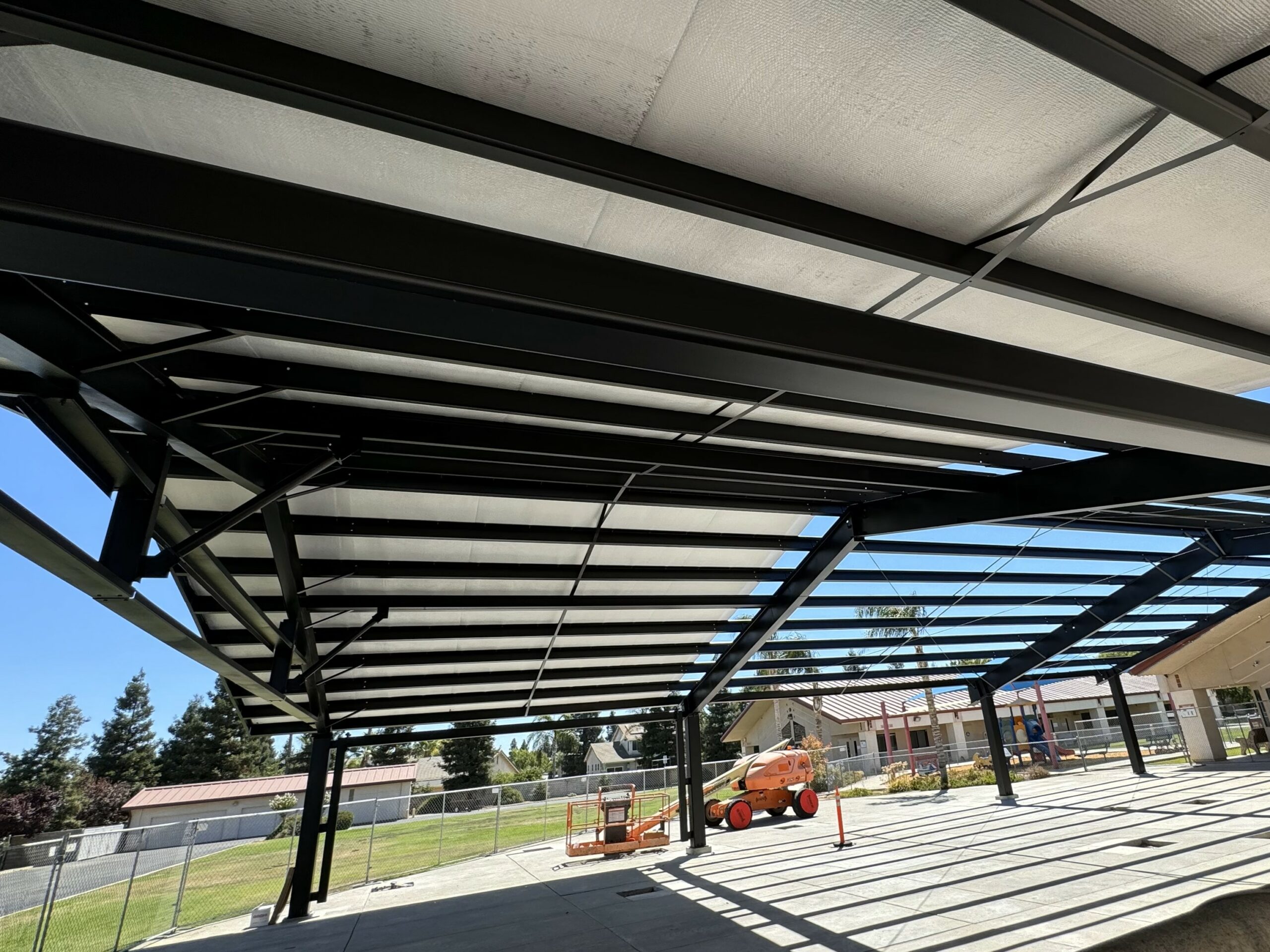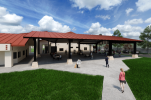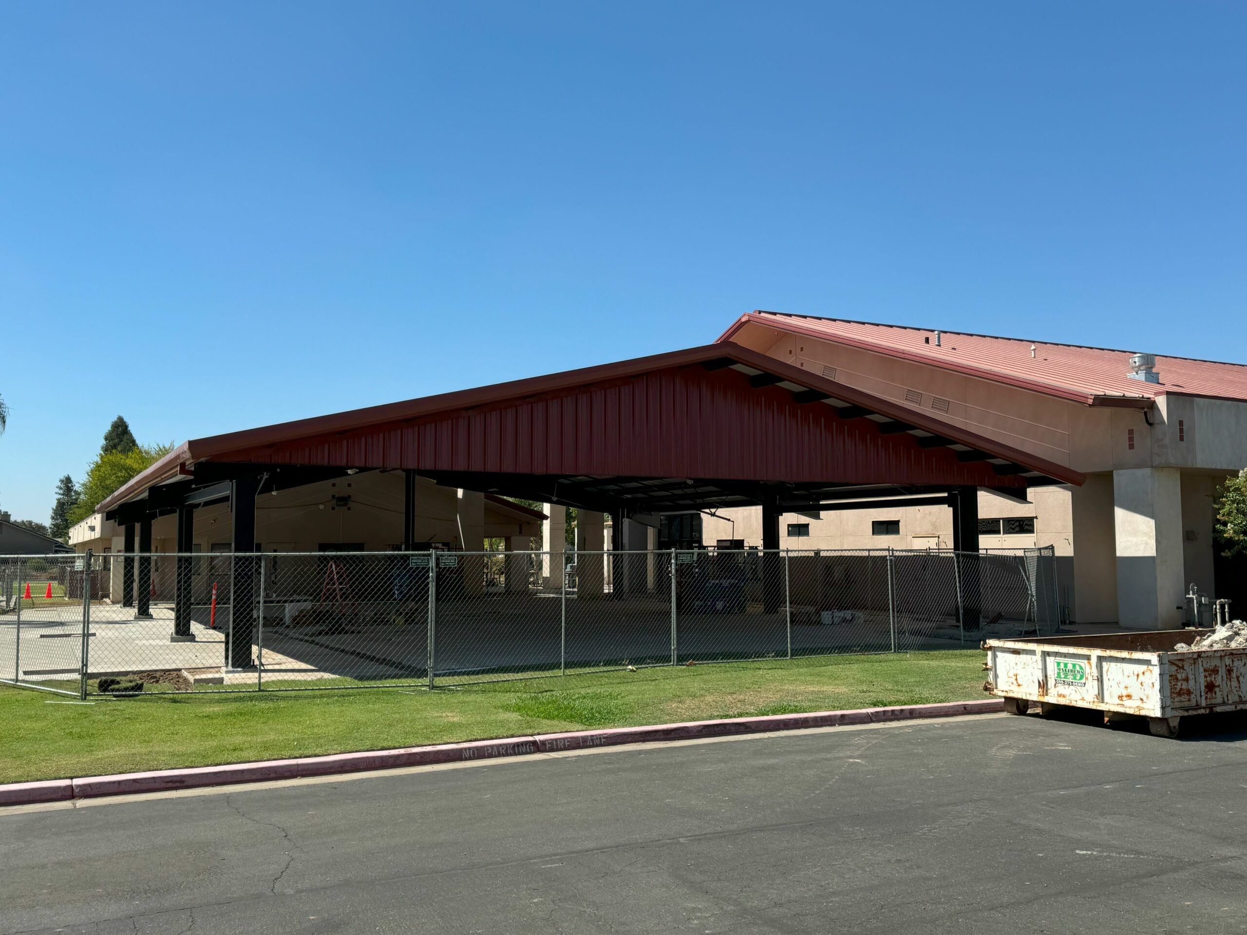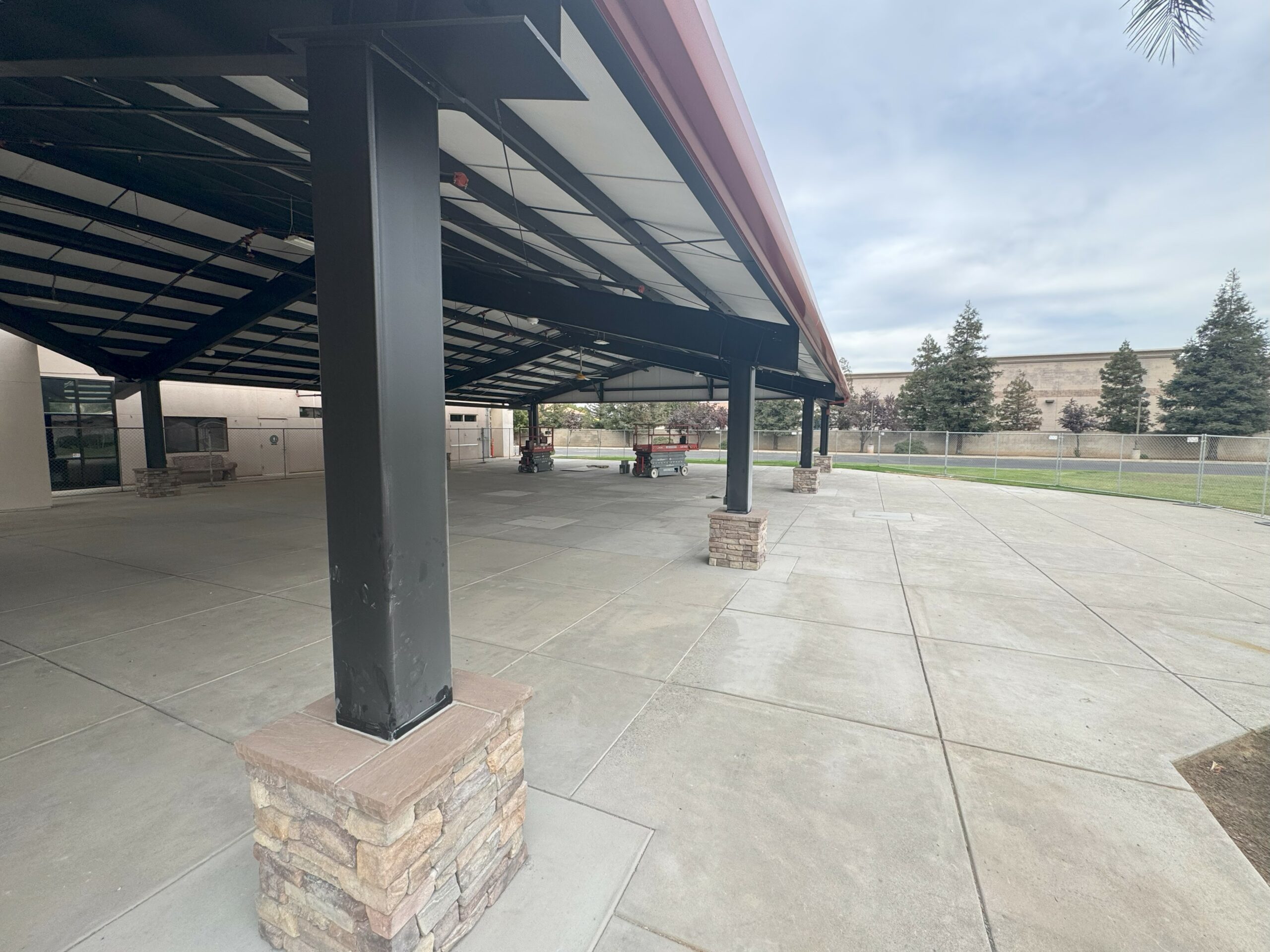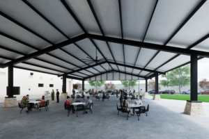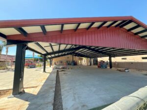 The new design is a fully covered, 5,000 sq. ft. open wall steel structure that covers virtually the entire concrete patio area and includes: