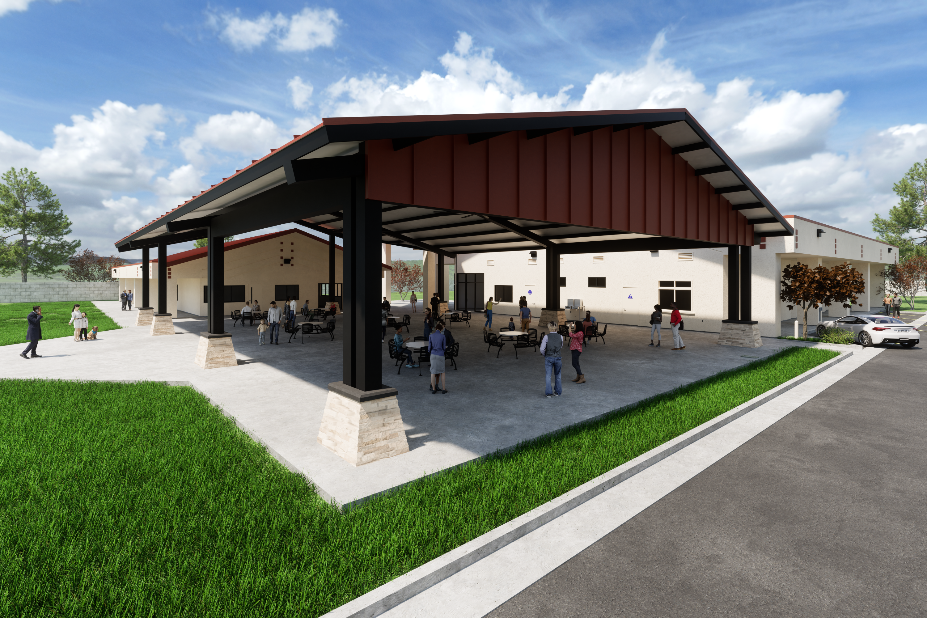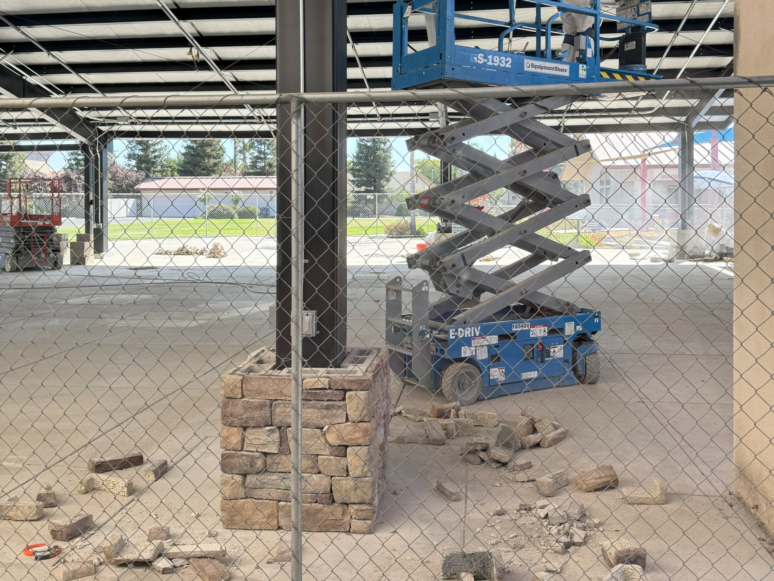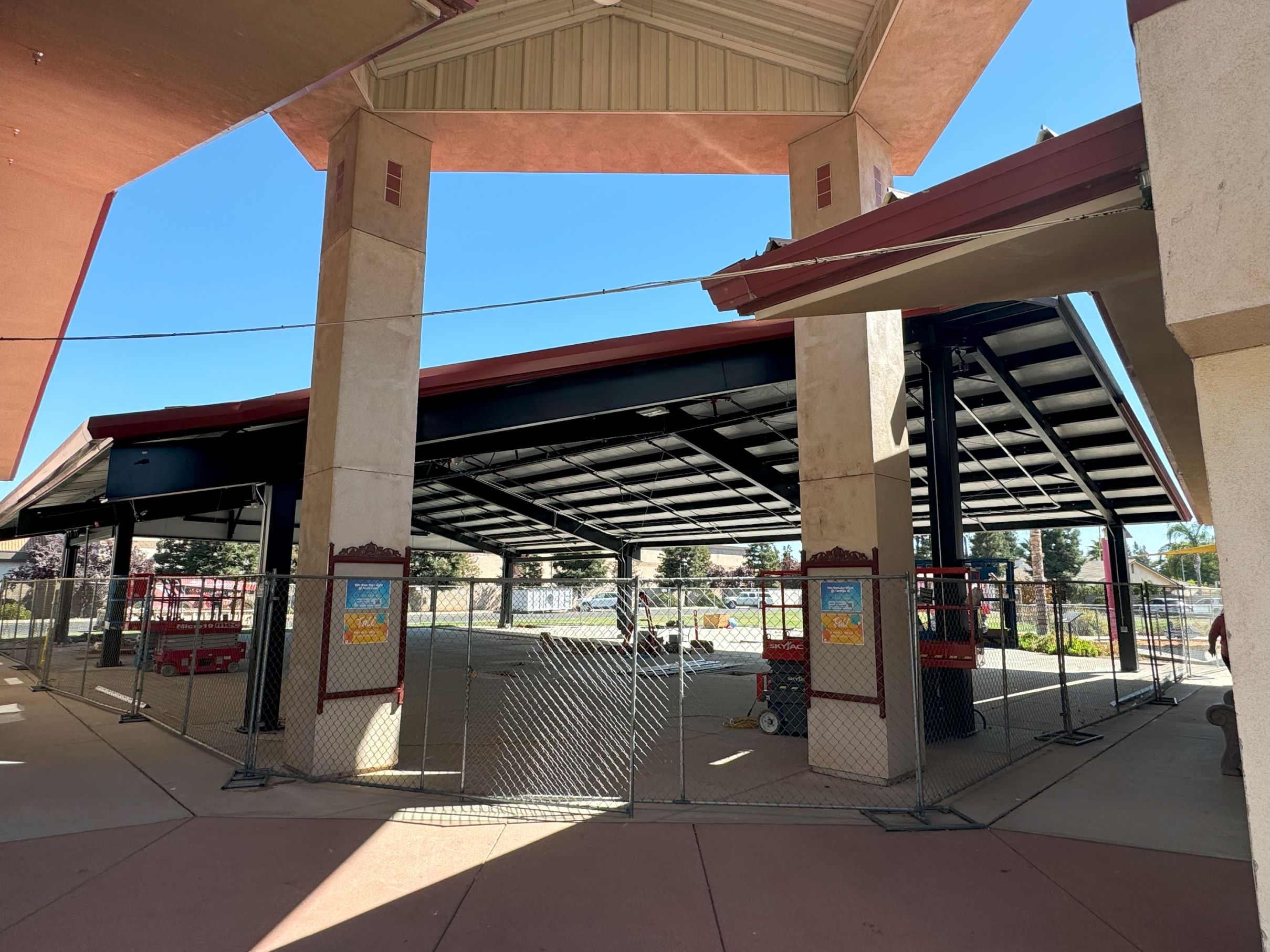 The new design is a fully covered, 5,000 sq. ft. open wall steel structure that covers virtually the entire concrete patio area and includes: