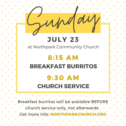 Breakfast burritos prepared by our Men’s Ministry cooking crew will be available after each church service in the courtyard. They are free and available while supplies last.
