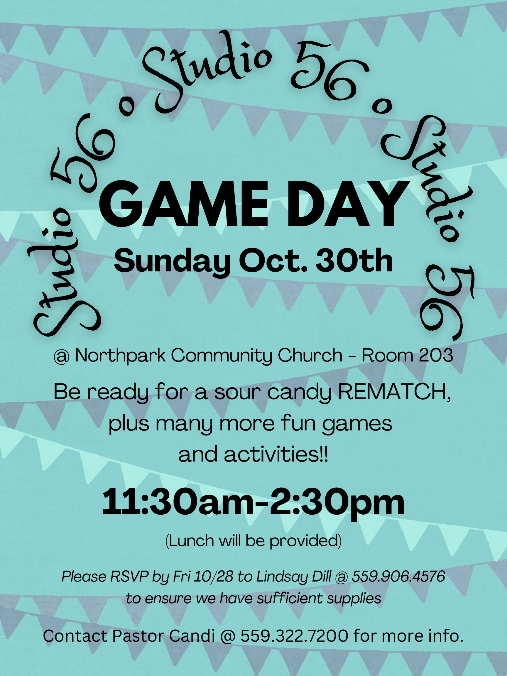 Our Studio 56 leaders and Pastor Candi will be joining in the FUN as well – we really hope your child will be there, and they are welcome to bring a friend!
