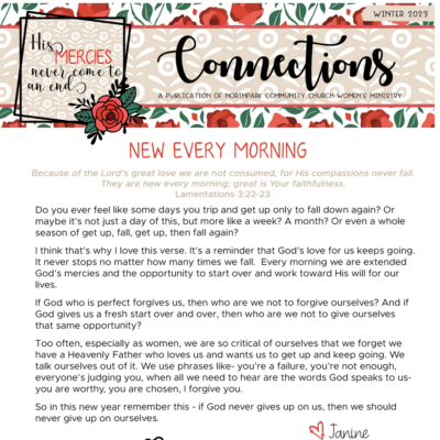 Northpark Church Women’s Ministries promotes and develops relationships with Jesus and with one another by supporting women’s and children’s ministries in our local community and in foreign lands. The purpose of Women’s Ministries is to give each woman the opportunity to use her gifts and talents to encourage all women. As we serve, pray and build relationships together, we also build a bond of unity in Christ’s love. We would like to welcome anyone that might want to become involved in any area of women’s ministries.